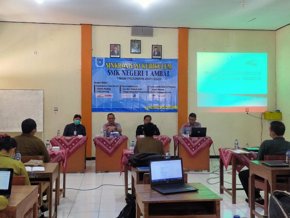 Pada tahun ini SMK Negeri 1 Ambal menjalin kerjasama dengan 6 IDUKA untuk sinkronisasi kurikulum yang terdiri dari 2 IDUKA untuk Jurusan TKRO, 2 IDUKA untuk Jurusan TB dan 2 IDUKA untuk Jurusan BDP. Sinkronisasi tersebut dilaksanakan dalam 2 tahap yaitu pada tanggal 03 Juni 2021 dan tanggal 08 Juni 2021.Kegiatan sinkronisasi ini diikuti oleh seluruh guru pengampu mapel kelompok C2 dan C3 dan perwakilan dari masing-masing IDUKA.